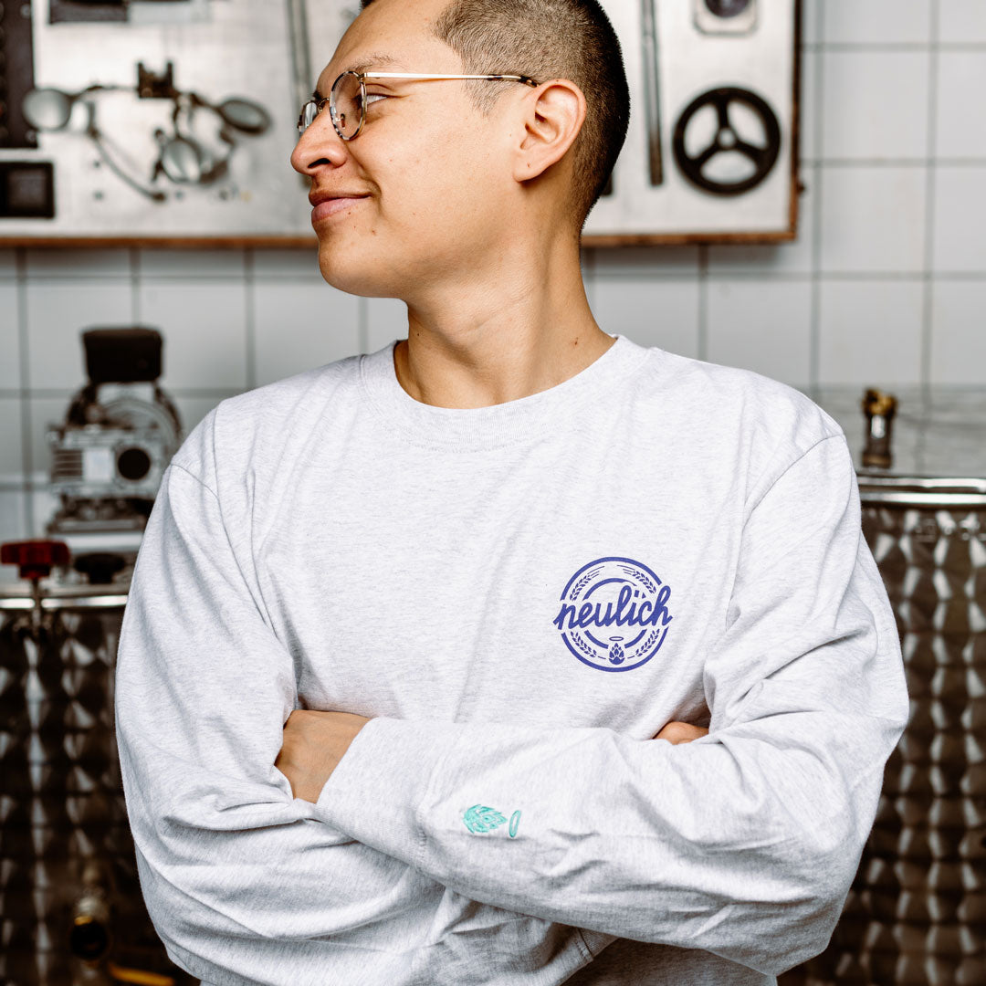 Sommer, Drinks und House Musik. Neulich steht für gute Dayrave Partys und wir feiern Leute die mit uns tanzen und gute Vibes vesprühen. Sei Teil der Dayrave Society aus Berlin Neukölln. Dieses Longsleeve im oldschool heather grey ist hochwertig verarbeitet und aus schwerer Baumwolle gefertigt. Der Retro-Backprint wurde im Siebdruckverfahren gedruckt und hält viele Raves aus.